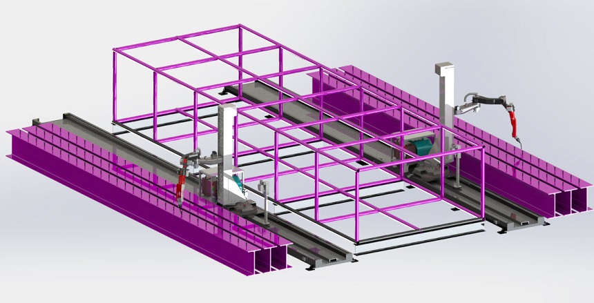 汽車配件焊接加工、鋼結構焊接加工時,就會用到焊接集成。因為我們知道,汽車某些配件的尺寸比較大,而我們常見的焊接機器人的作業半徑一般在1500mm到2000mm左右,沒有輔助設備的情況下,焊接機器人不能滿足焊接需求。所以我們會配備機器人行走地軌(焊接機器人第七軸)來實現焊接加工。